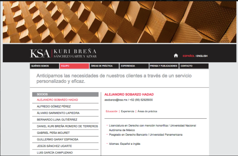 Conocidos en México como una firma que aporta soluciones innovadoras, integrales y eficaces a los asuntos más complejos, Kuri Breña, Sánchez Ugarte y Aznar se fundó en la Ciudad de México, a principios de la década de los 90, por un grupo de abogados mexicanos con amplia experiencia, e identificados además por su clara visión de negocios.